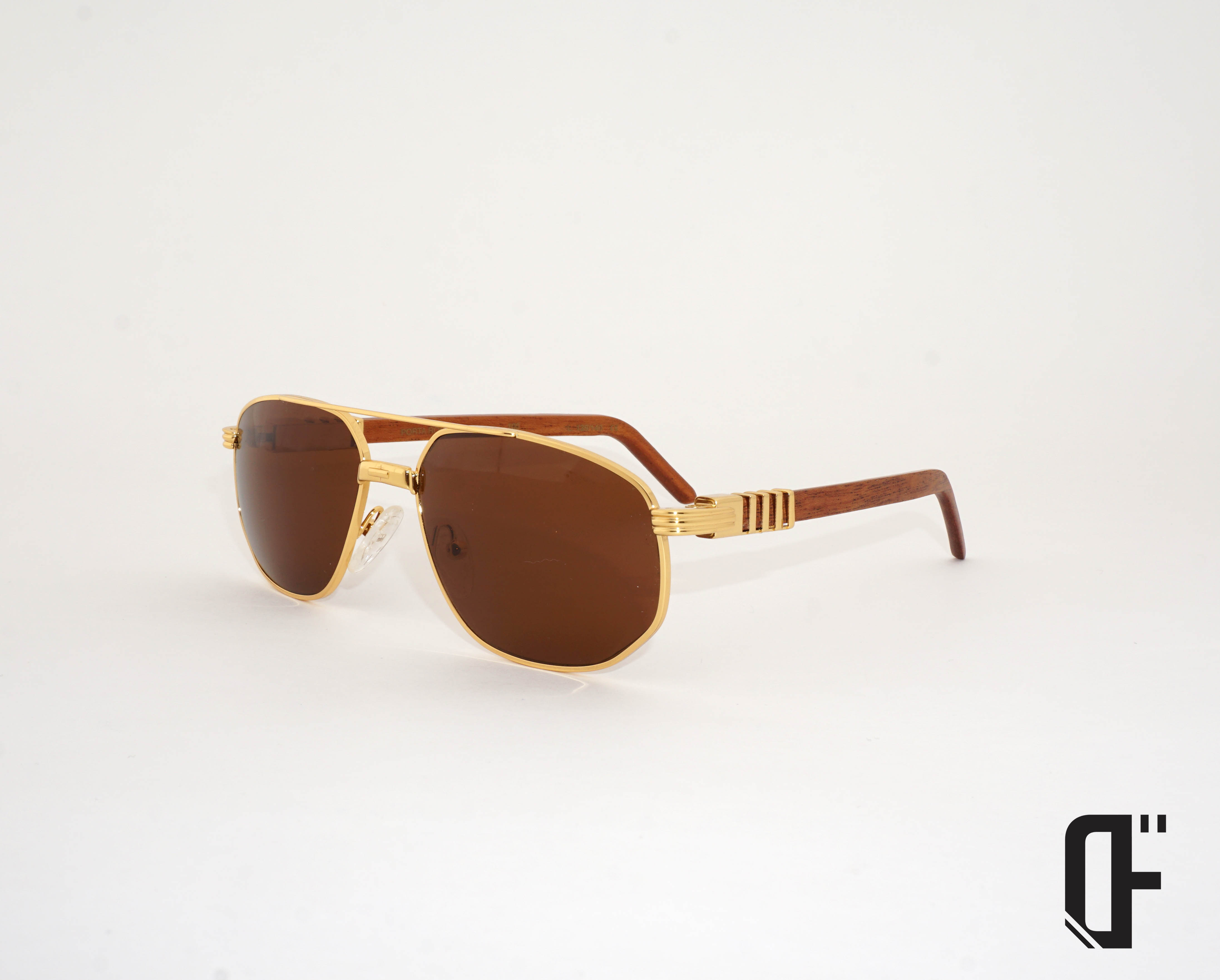 Porta Romana bamboo arms with great gold details. These frames are handmade in Italy form the early 90's. Marked Patent Peding on the inside arm. Gold and Wood are a classic combo.
